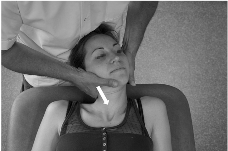 - 목 굽힘, 회전 및 옆굽힘 시에 반대편 통증 (stretch pain)